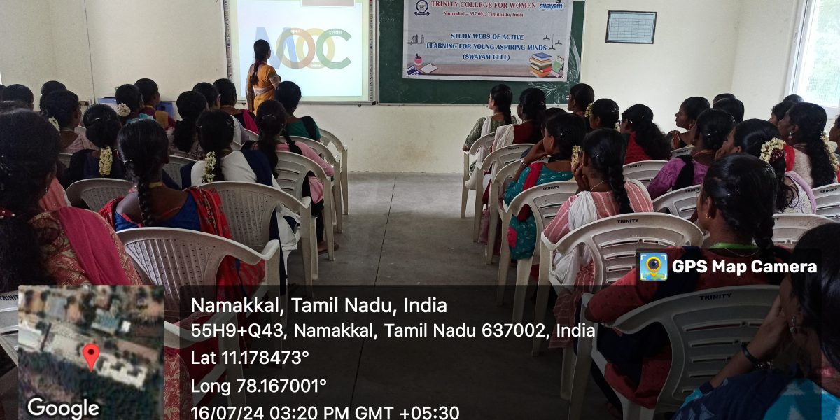 On behalf of Swayam Cell, Trinity College for Women, Namakkal conducted a SWAYAM AWARENESS program entitled “SWAYAM-NPTEL: Our Partner in Lifelong Learning” on July 16, 2024. Dr. R. Sakunthaladevi, Assistant Professor in Physics and Member – SWAYAM Cell, Trinity College for Women, Namakkal was the resource person. There is no tuition fee for these Swayam online courses. We only pay an examination fee. These courses help us learn about the recent developments in various fields. All the students at our college should apply for at least one course each semester. It is very helpful for your future growth, she said.