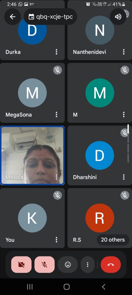 Mrs. K. Mekala, Assistant Professor in Computer Science & Coordinator, Social Media, Trinity College for Women, Namakkal, delivered the topic titled “The Bhopal Strategy : Key lessons”. It was held in the virtual mode of Google Meet.