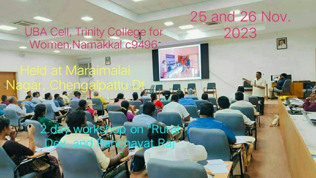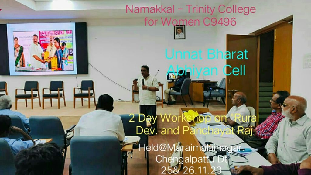 On behalf of the Rural Development and Panchayat Raj Department, Government of Tamil Nadu, State Institute of Rural Development and Panchayat Raj, Tamil Nadu State conducted a two-day event titled “Stakeholder consultative workshop on providing hand-holding support to village panchayats in preparation of village panchayat development plan,” held at SIRDPR premises, Maraimalai Nagar, Chengalpattu District, on November 25th and 26th, 2023.