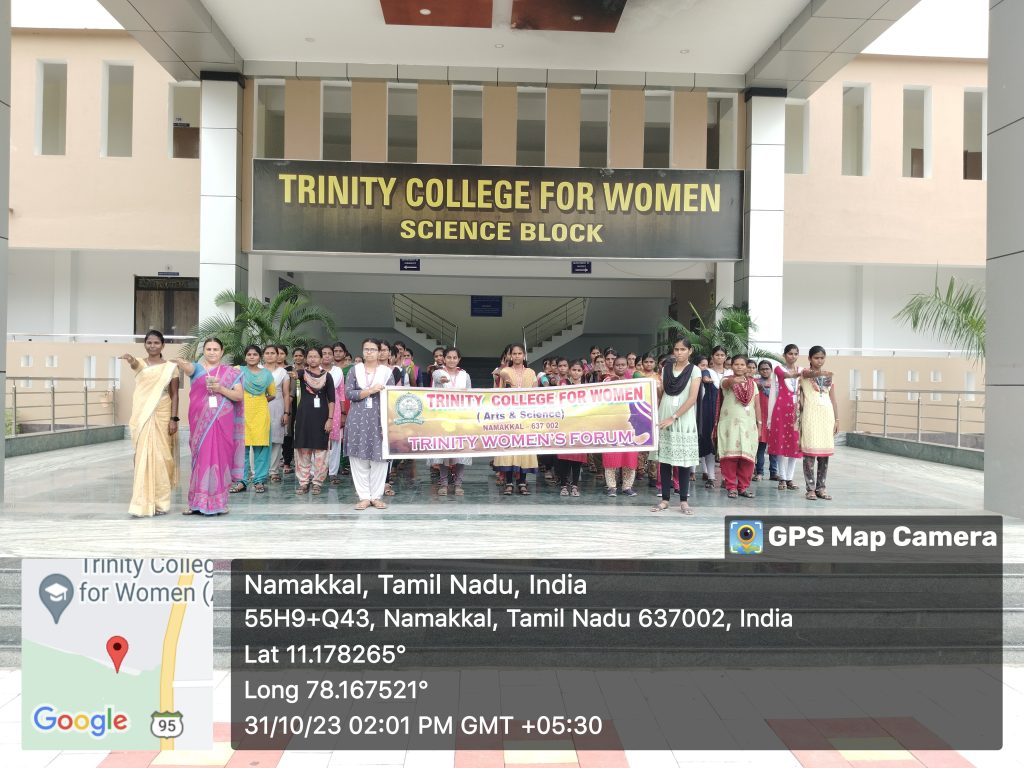 On behalf of Trinity Women’s Forum, students of Trinity College for Women, Namakkal, took a pledge for a unified India, on 31st October 2023. Owing to the death anniversary of former Prime Minister of India Smt. Indira Gandhi, this event was held.