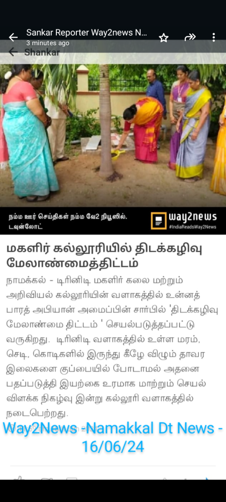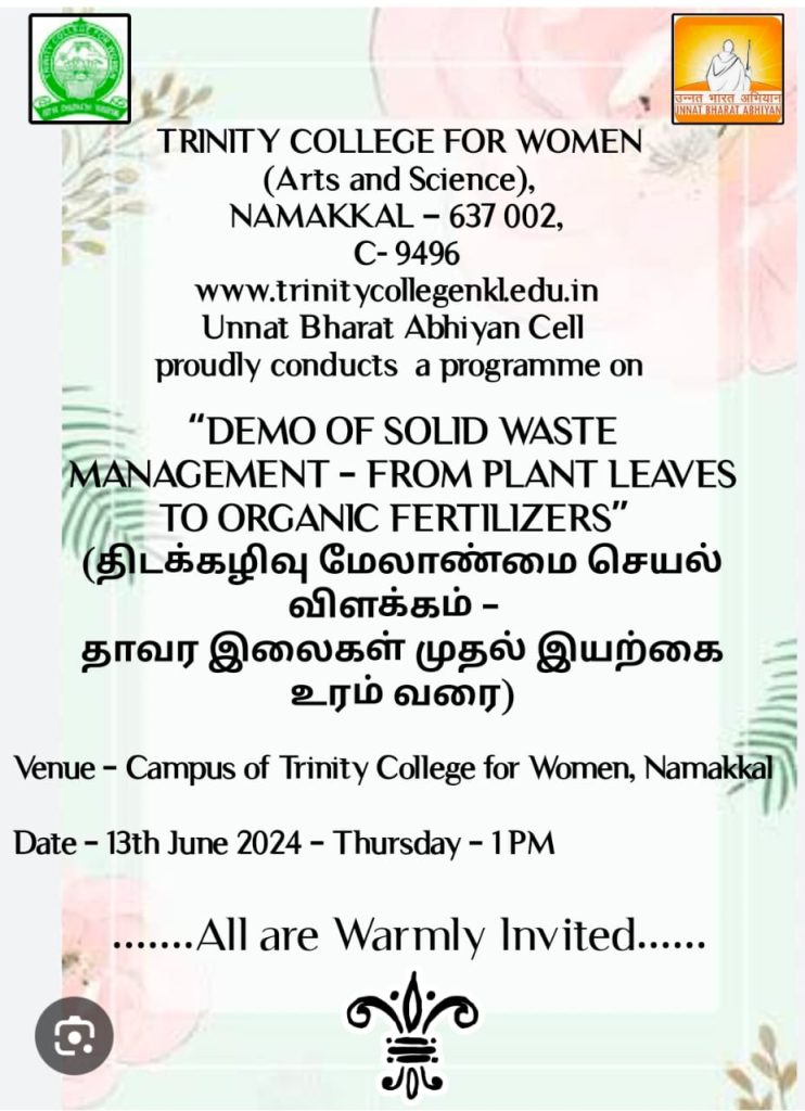 On behalf of Unnat Bharat Abhiyan Cell, Trinity College for Women, Namakkal, we maintain solid waste management in our college.