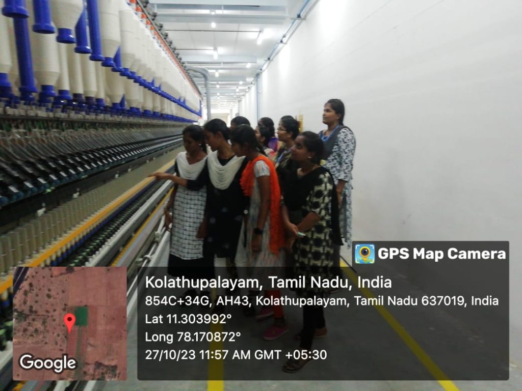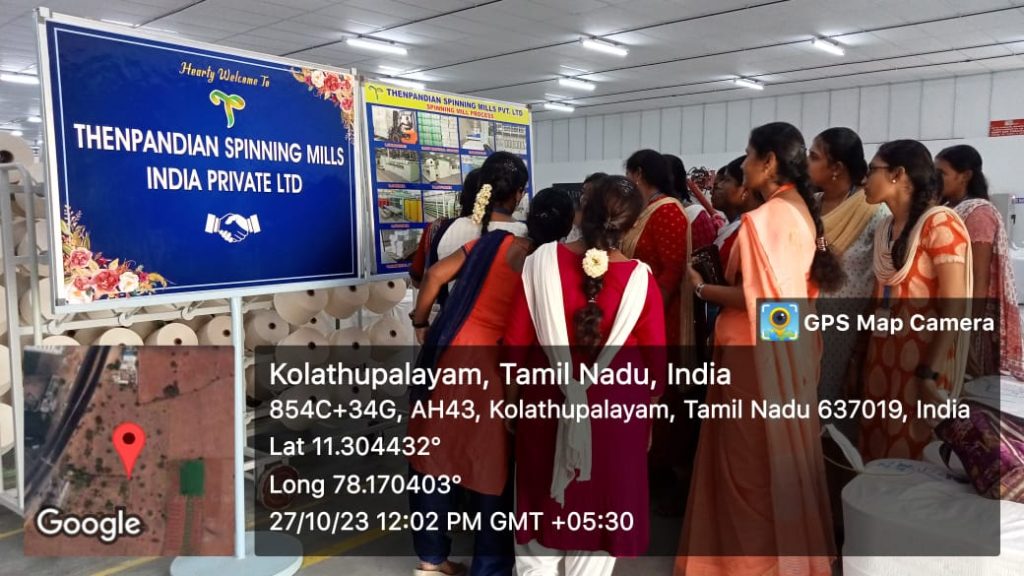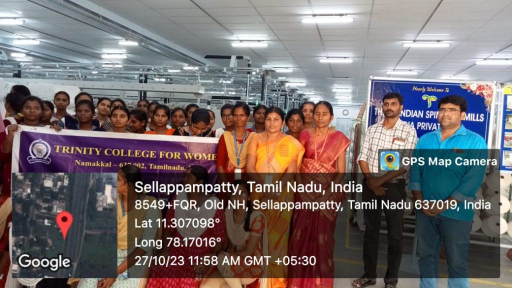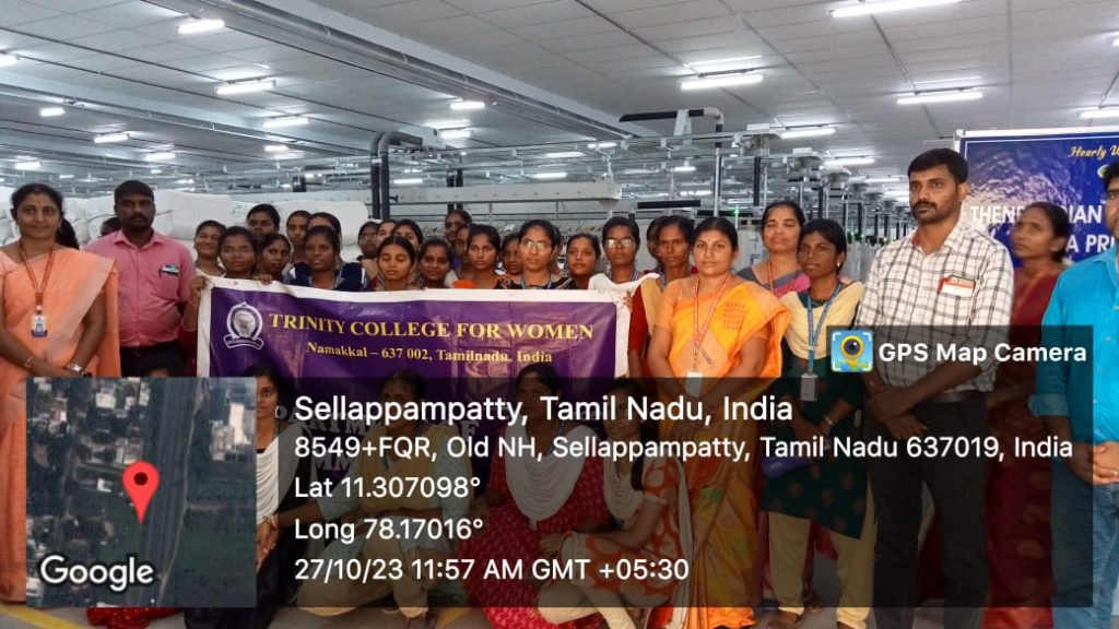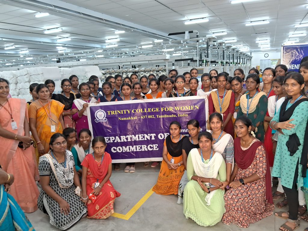 On October 27, 2023, the students of first Year M.Com., final years B.Com., B.Com., CA, and M.Com of Trinity College for Women, Namakkal, went on an industrial visit at M/s. Thenpandian Spinners Private Limited, Avalnaickenpatti village, Sellappampatti via, Namakkal District.
