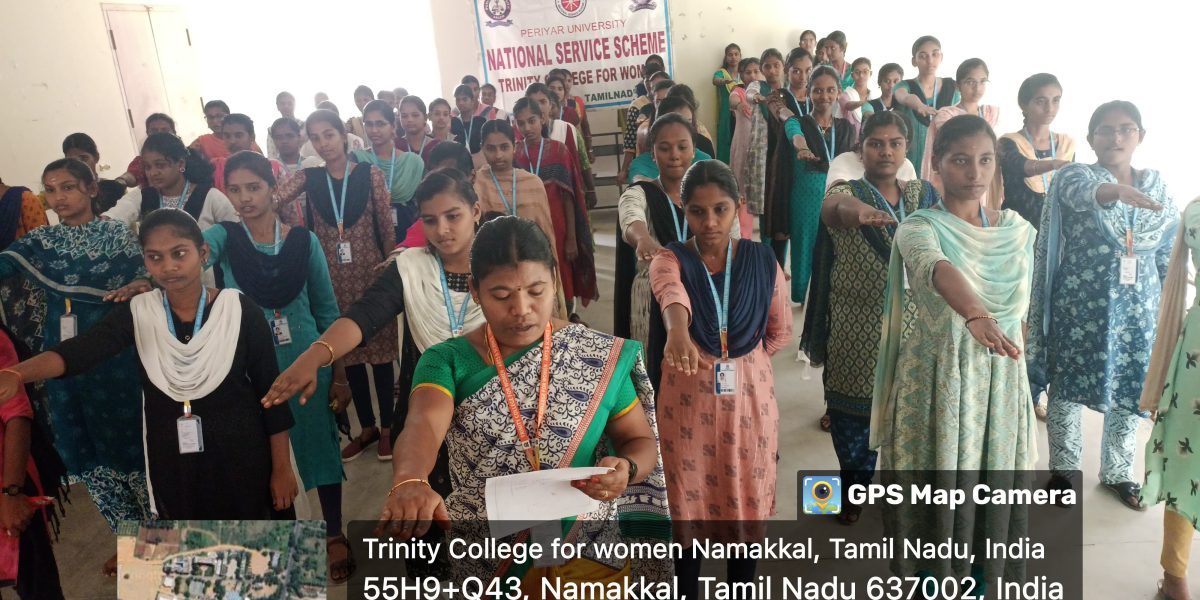 On the occasion of the National Anti-Leprosy Day, The NSS of Trinity College for Women, Namakkal, conducted an awareness programme on 30th January 2025. At the end of the programme, the volunteers of NSS took a pledge to make India Leprosy free.