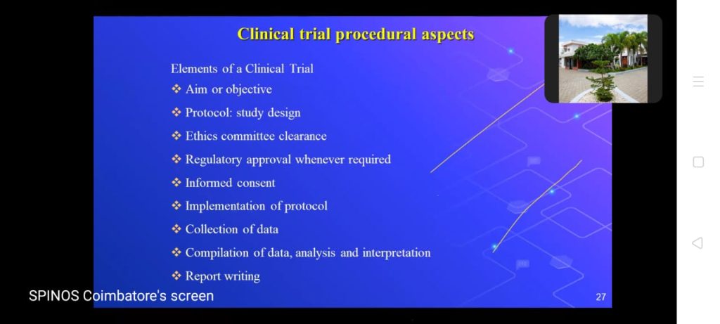 Dr. Kuriakose Joy, Medical Writer, Spinos, Coimbatore, spoke on the topic of “International Regulatory Requirements on Clinical Trials and Data Management.”