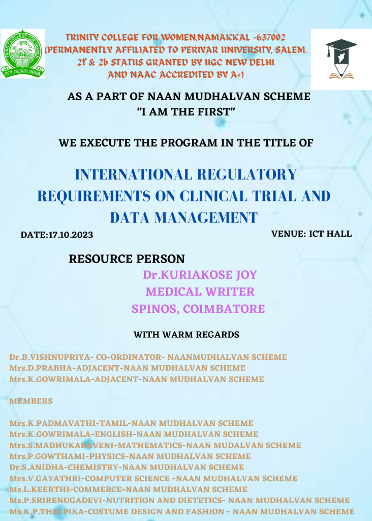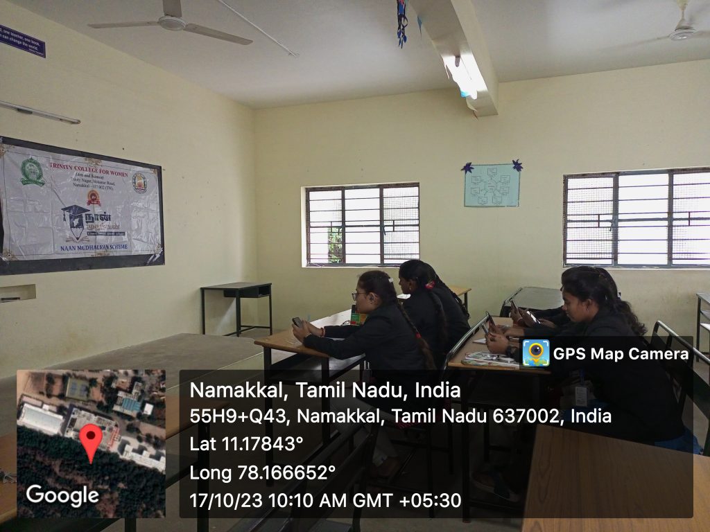 Trinity College for Women, Namakkal, On behalf of the Naan Mudhalvan, an online programme was held on October 17, 2023.