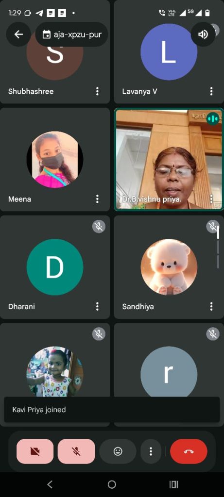 Dr. B. Vishnupriya, Assistant Professor in Tamil & Coordinator – Naan Mudhalvan, Trinity College for Women, Namakkal, spoke on the topic titled “Digital Education – Past, Present and Future.” Today, because of high-tech networks and multimedia, the education sector has emerged as a fast developing in all the fields, especially higher education. Now, many students are pursuing higher education through virtual mode. In particular, SWAYAM – NPTEL courses are an important part of digital education. Many students and faculty members are doing this online education enthusiastically, she said. Also, she elaborately highlighted the benefits of online education for the students’ community. Nearly 100 students of the College actively took part in that online mode.