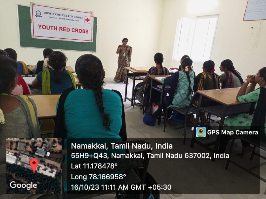 The programme was organised by Mrs. V. Kalaivani, Coordinator, Youth Red Cross, Trinity College for Women, Namakkal.