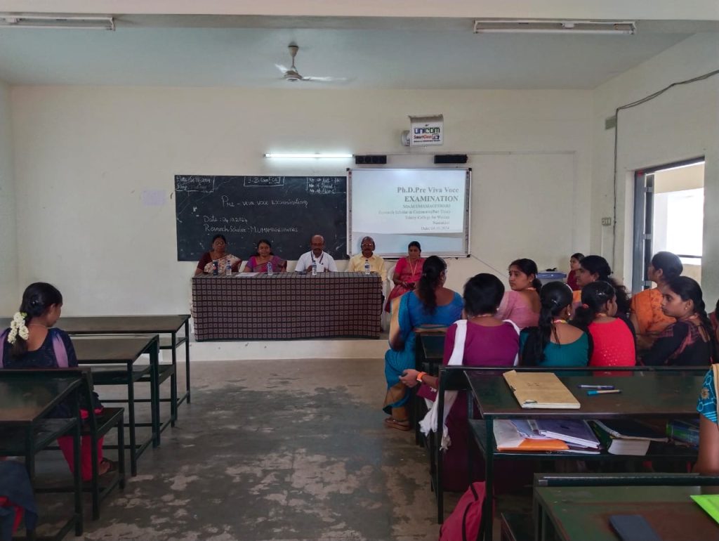 As per the guidelines from the Research & Development Cell, Periyar University, Salem, her Ph.D., Pre-viva Examination was held on 04th October 2024 in the ICT Hall, Department of Commerce, Trinity College for Women, Namakkal. Dr. J. Uma Maheswari, Research Supervisor and Guide welcomed the gathering.