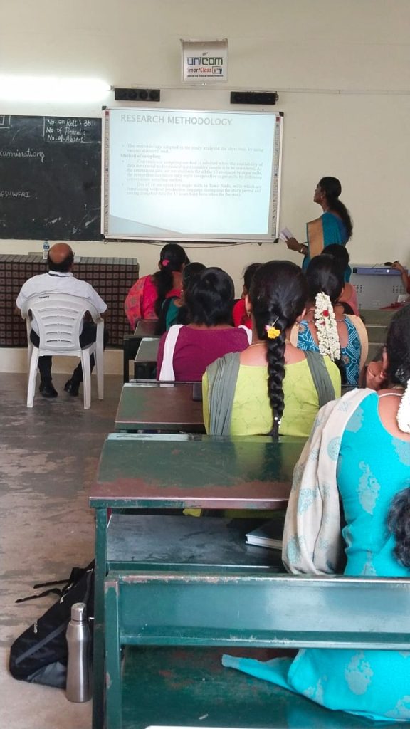 Mrs. M. Umamageswari, Assistant Professor in Commerce, Trinity College for Women, Namakkal is pursuing her Ph.D., Commerce (Part-Time) research course under the guidance of Dr. J. Uma Maheswari, Principal, Salem Kongunadu Arts and Science College for Women, Mamangam, Salem & Former Head of the Department of Commerce, Trinity college for Women, Namakkal. Her title of the Ph.D., Project Research – “An analysis of production and financial performance of select sugar cooperatives in Tamil Nadu”.