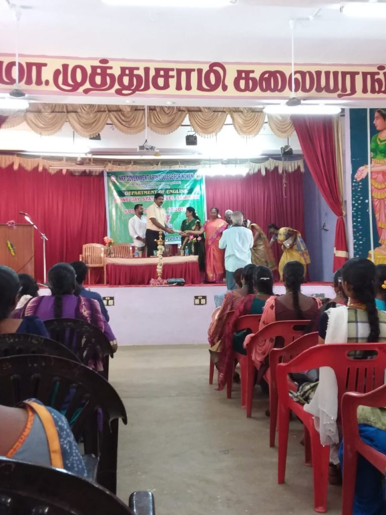 The Department of English, Namakkal Kavingnar Ramalingam Government Arts College for Women, Namakkal organized a one day state level seminar entitled “Post-Colonial Studies” on 25th October 2019 in the NKR College Auditorium.