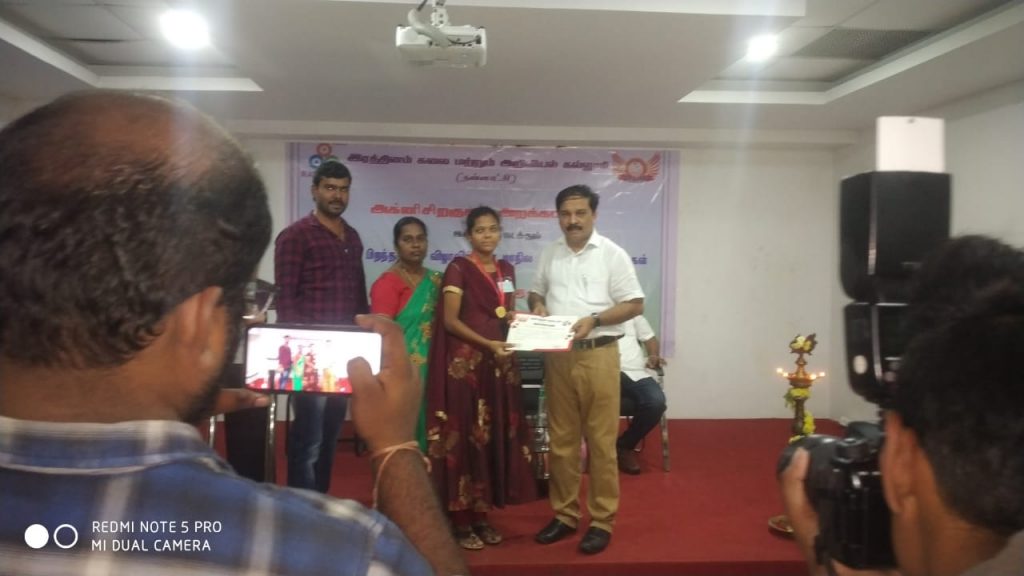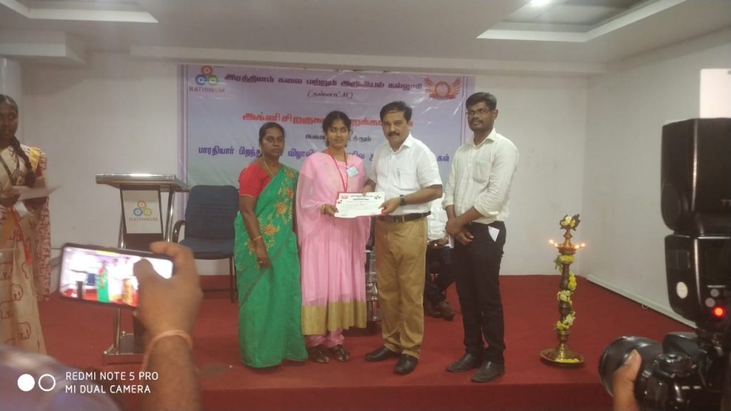 Agni Siragukal Arakkattalai (Wings of Fire Trust), Bargur, Krishnagiri district conducted various competitions such as essay writing, elocution, lyrics and drawing in our College campus on 15.10.2019. Owing to the reason of Youth Awakening Day (Dr. Kalam’s birth anniversary) and birth anniversary of Mahakavi Bharathiar this event were held. In this regard, the following students of our College have participated for getting the award of “Dream Man” (கனவு நாயகன் ) in the state level contest of above mentioned competitions held at the campus of Rathinam College of Arts and Science, Pollachi Main Road, Echanari, Coimbatore on 8th December 2019 (Sunday). The following students have obtained appreciation certificates and special prizes from the chief guests.