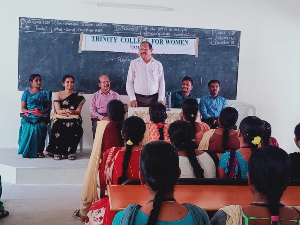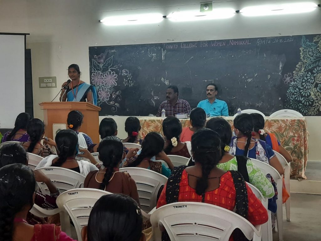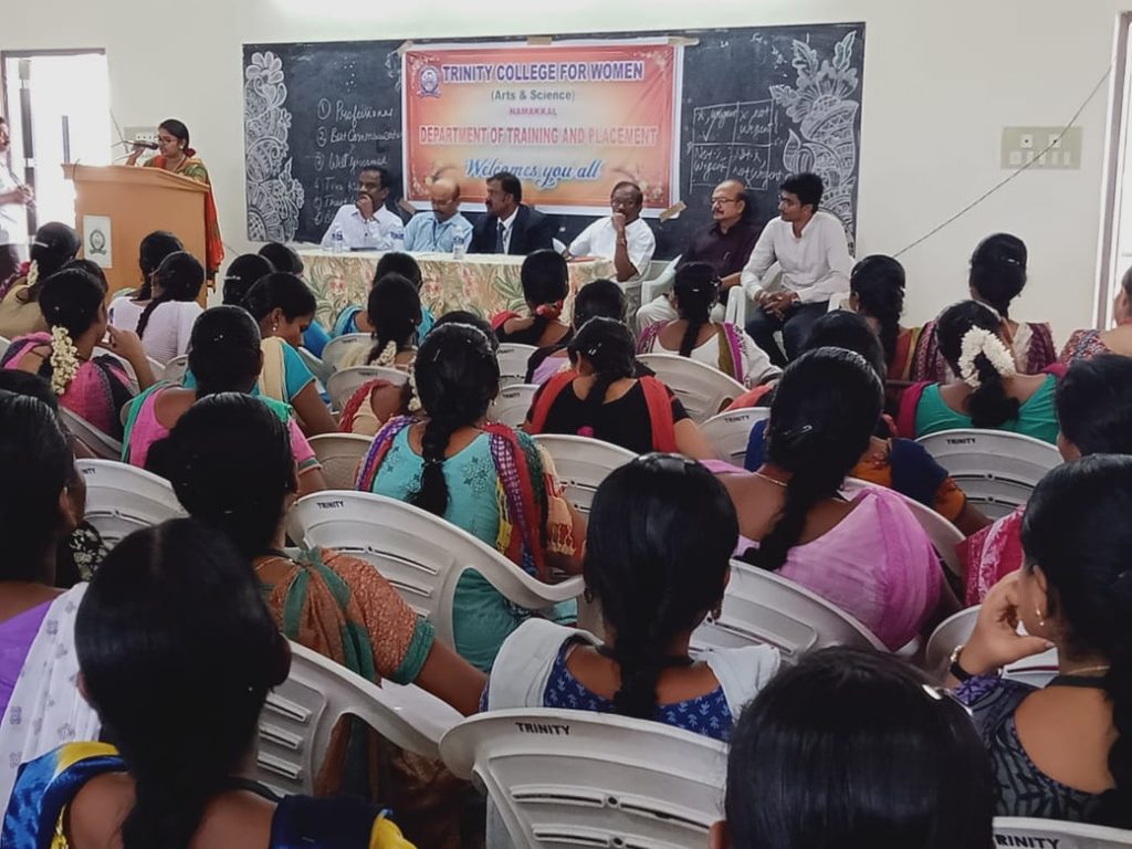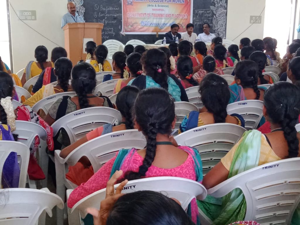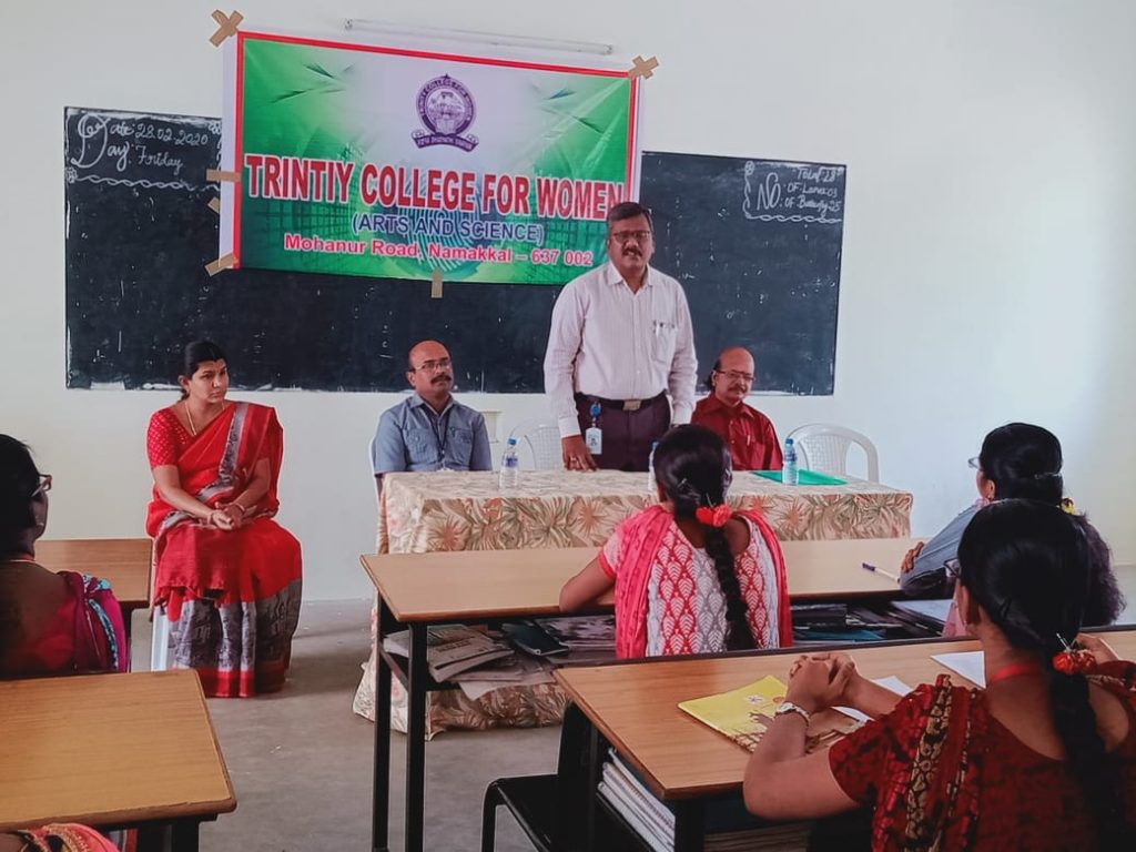 Mr. P.K. Sengodan, Chairman, Dr. M.R. Lakshiminarayanan, Principal, Dr. Arasuparameswaran, Director – Academic, Dr. N. Elamathi, Coordinator of IQAC, Mrs. R. Navamani, Assistant Coordinator of IQAC, Dr. G. Selvalakshmi, Coordinator, Entrepreneurship Development Cell, Dr. M. Sasikala, NSS Programme Officer, Dr. R. Malarvizhi, HOD of Mathematics, Mrs. V. Indirakumari, Coordinator of Eco Green Club, Mrs. S. Bhuvaneswari, Mrs. M. Malathi, Mrs. K. Mekala and Mrs. A. Vijayasarathi,  Assistant Professors in Computer Science, Mrs. G. Nithya, Dr L Tamilselvi & Mrs. G. Sathiyasangari,  Assistant Professors in Commerce, Mrs. S. Bharathi, Assistant Professor in English, Dr. B. Vishnupriya & Dr. R.A. Anitha, Assistant Professors in Tamil, Mr. N.S. Senthilkumar, Administrative Officer and more or less 550 students of Trinity College for Women attended in that first day programme.