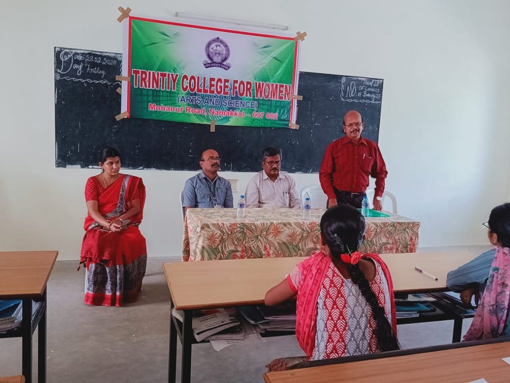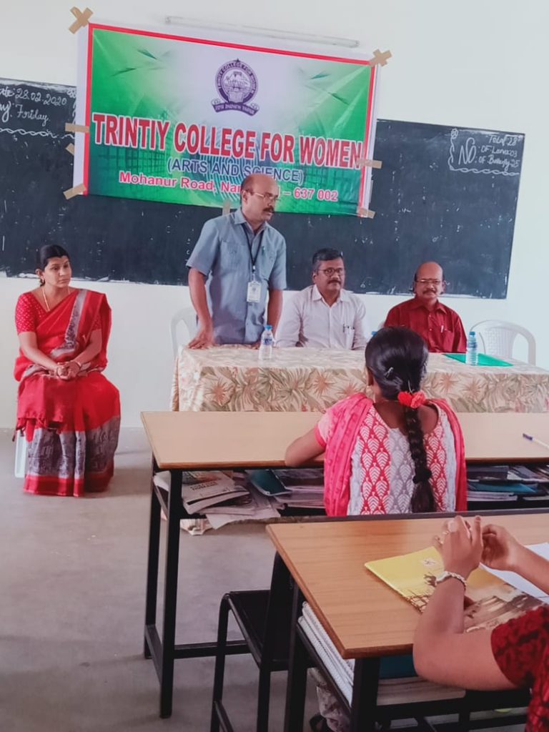 The Placement Cell, Trinity College for Women, Namakkal organized an event in the title of “Government Competitive Examinations – Tips for Preparatory Measures”on 20th November 2021.   Mr. S Nirmal Valan Arasu, Consultant & Motivational Speaker &  Mr. J. Balaji, Keynote Speaker,  Brilliant Educational Academy, Madurai were the resource persons.