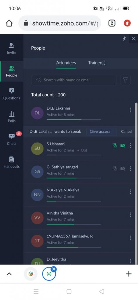 Dr. G. Selvalakshmi, Coordinator of Entrepreneurship Development Cell, Dr. N. Elamathi, Coordinator of Research, Development and Innovation Cell, Dr. M. Sasikala, NSS Programme Officer, Mrs. R. Navamani, Coordinator, Alumni Forum, Mr. N.S. Senthilkumar, Administrative Officer and nearly 100 students benefited through that webinar.
