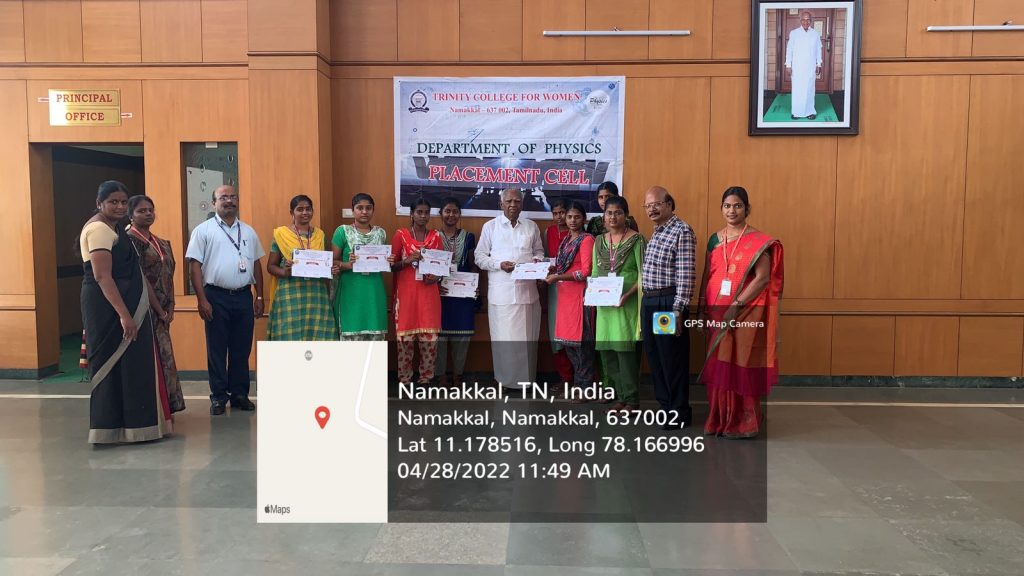 The Placement Cell members Dr C. Gobiya, Mrs. S. Bharathi, Mrs P. Nandhini, Dr. M. Ganga, Dr.G. Sathiya Sangari and Mrs. S.Priya were also present.