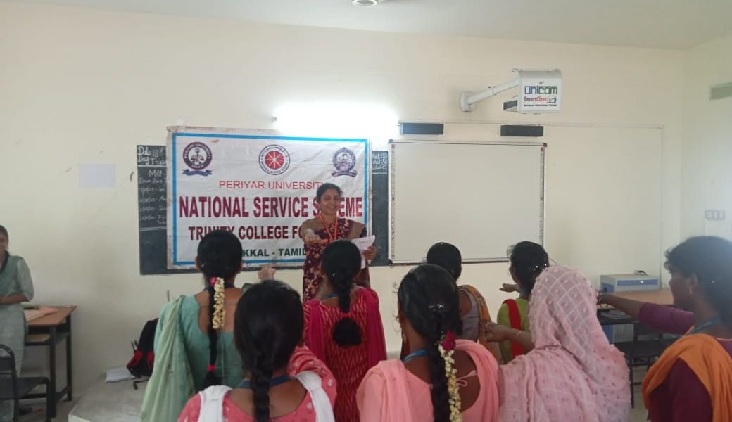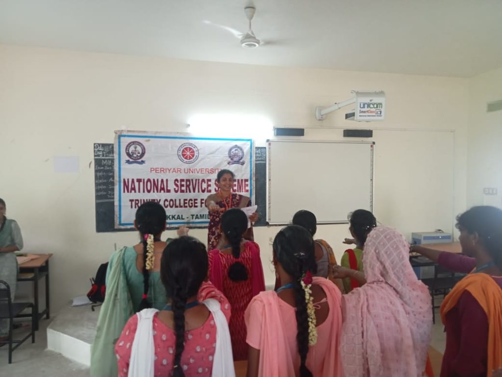 To commemorate the birth anniversary of the late Shri Rajiv Gandhi (20 August 2023), former Prime Minister of India, it is observed every year to encourage national integrity, affection, love, and communal harmony among the Indian people of all religions. In this circumstance, a pledge (Sadhbhava Diwas) was organised on August 18, 2023, by 11.30 a.m. with the guidance of Dr. M. Sasikala, NSS Programme Officer, Trinity College for Women. Namakkal took the pledge along with the 50 NSS volunteers and students.