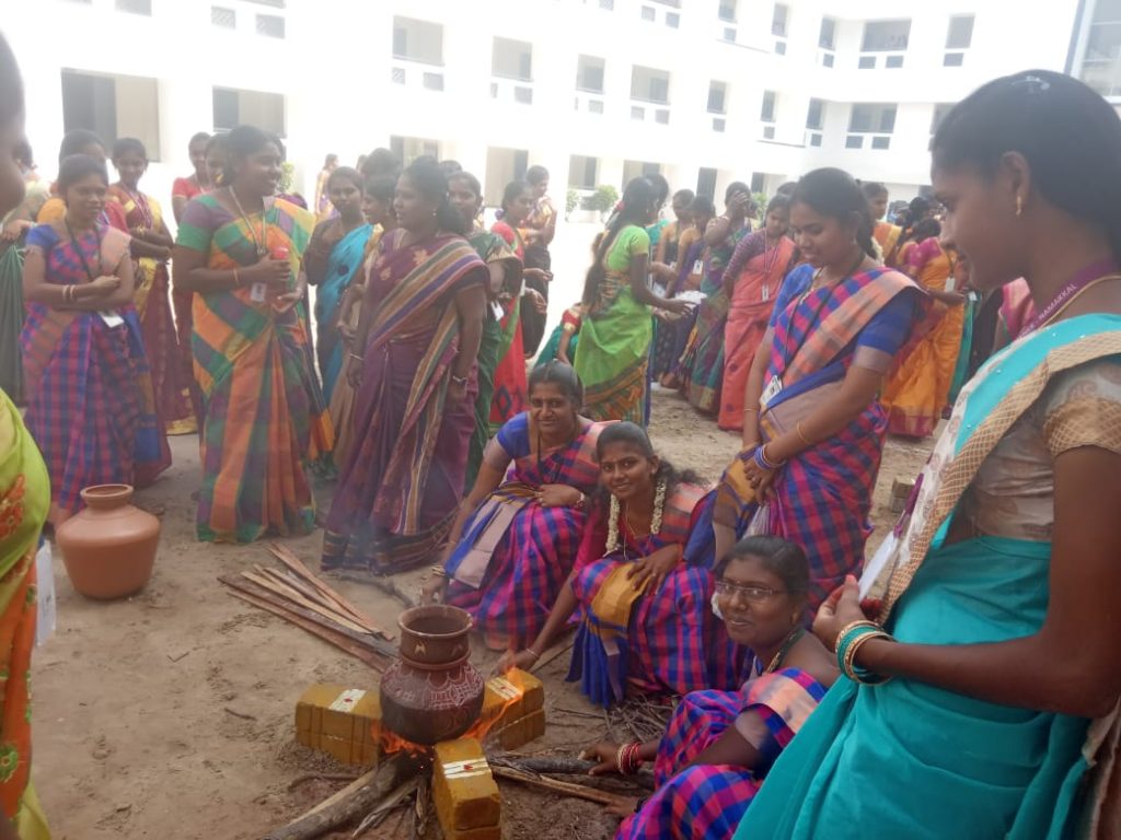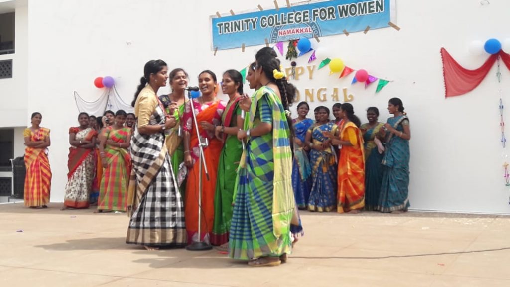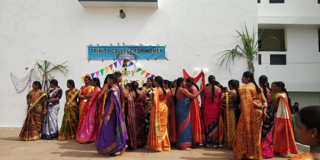 The Trinity College for Women, Namakkal celebrated Pongal festival in a memorable manner on 13th January 2020. Each department students prepared Pongal in the College premises. Mr. P.K. Sengodan, Chairman, Er. K. Nallusamy, Secretary, Dr. M.R. Lakshiminarayanan, Principal and Dr. Arasuparameswaran, Director – Academic were the special invitees. They wish all the staff and students their heartiest wishes in celebrating the Pongal. These Pongal celebrations took place in a village style. All the special invitees also honoured the farmers for their contribution in the field of agriculture.