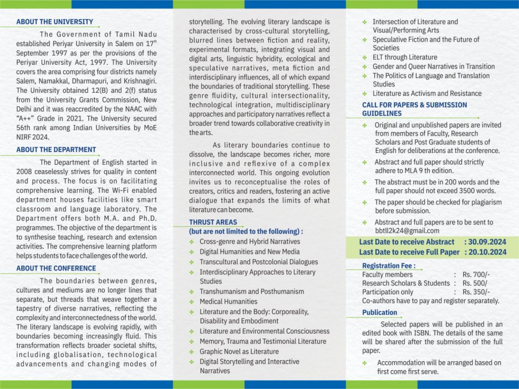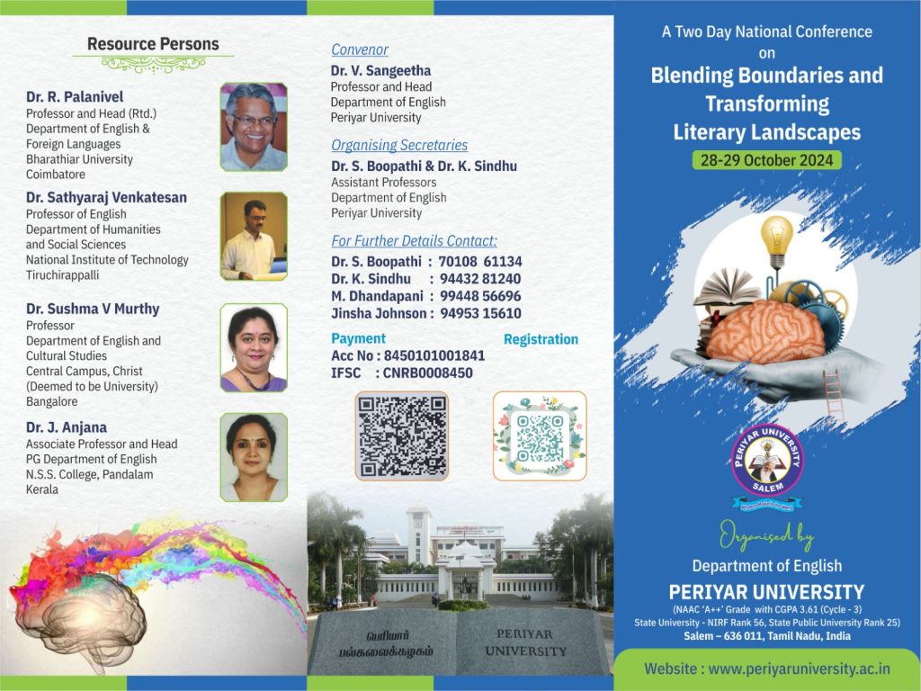Reg., 28 & 29.10.24 – English Department – Periyar University 2 day national conference