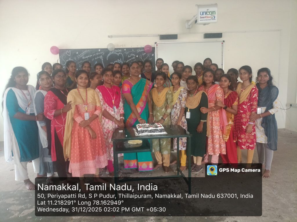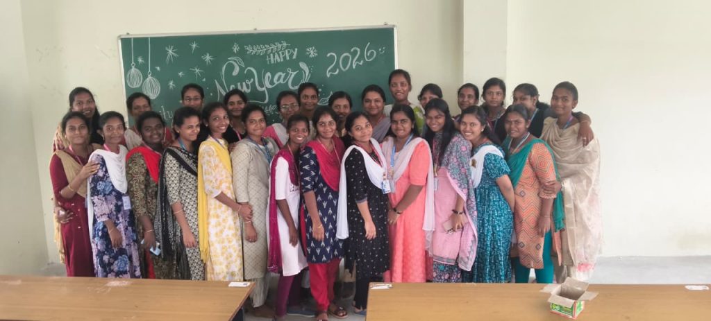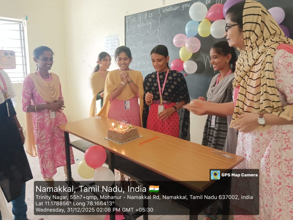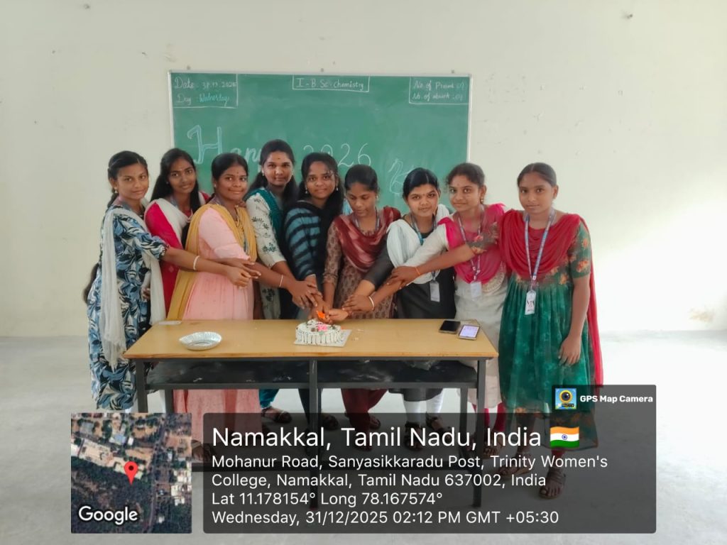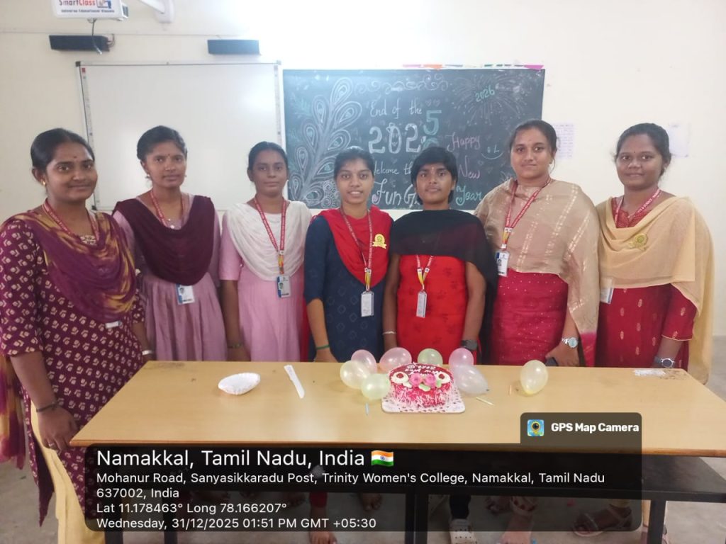 Students and the faculty members of Trinity College for Women, Namakkal, enthusiastically celebrated the New Year 2026 on 31st December 2025 in the College premises.