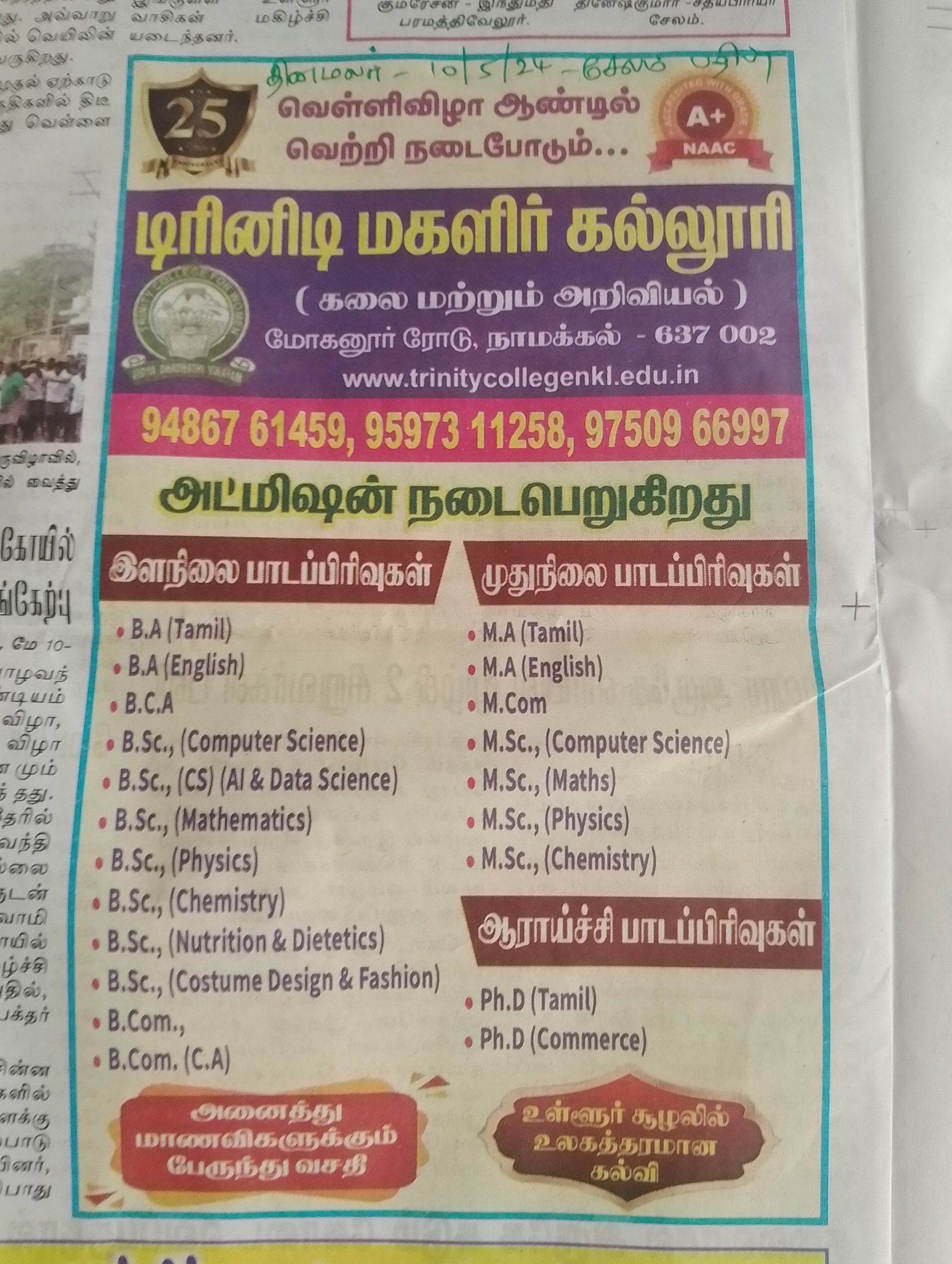 Tamil leading dailies = College admission advertisement – 2024-2025