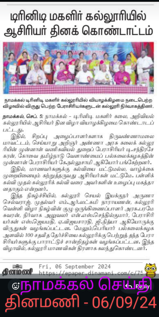 Teacher’s Day Celebrations @ Trinity College for Women, Namakkal