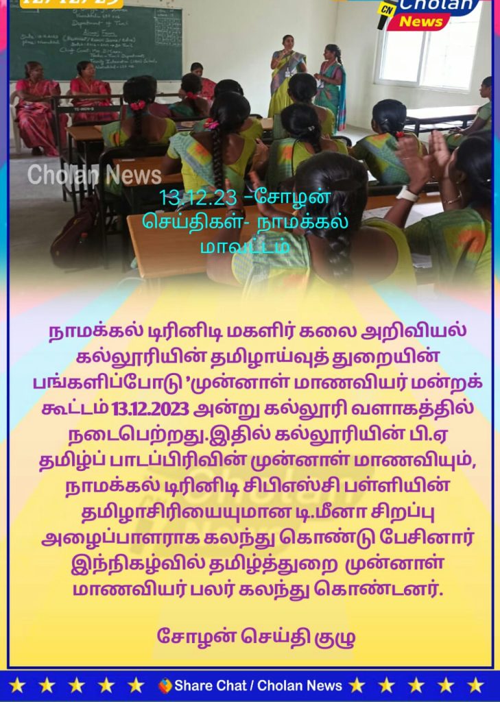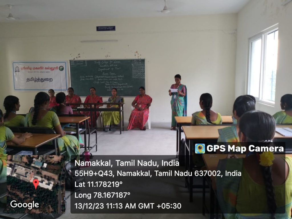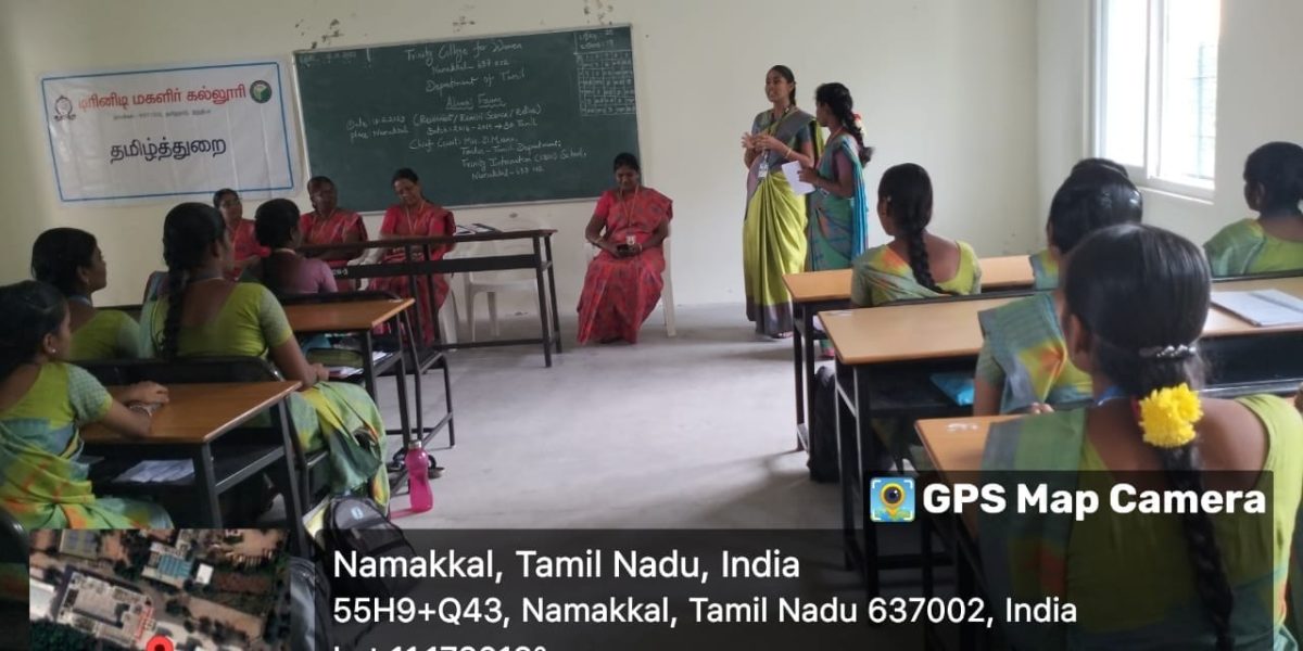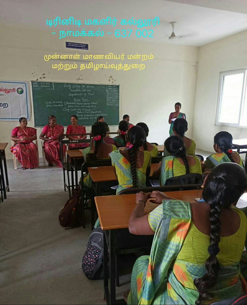 I am proud to be a student at Trinity College for Women. This institution not only taught me academic subjects but also life skills. You study here up to a Ph.D. in Tamil, and you have to utilise this opportunity, she proudly said to the current students of Tamil department.
