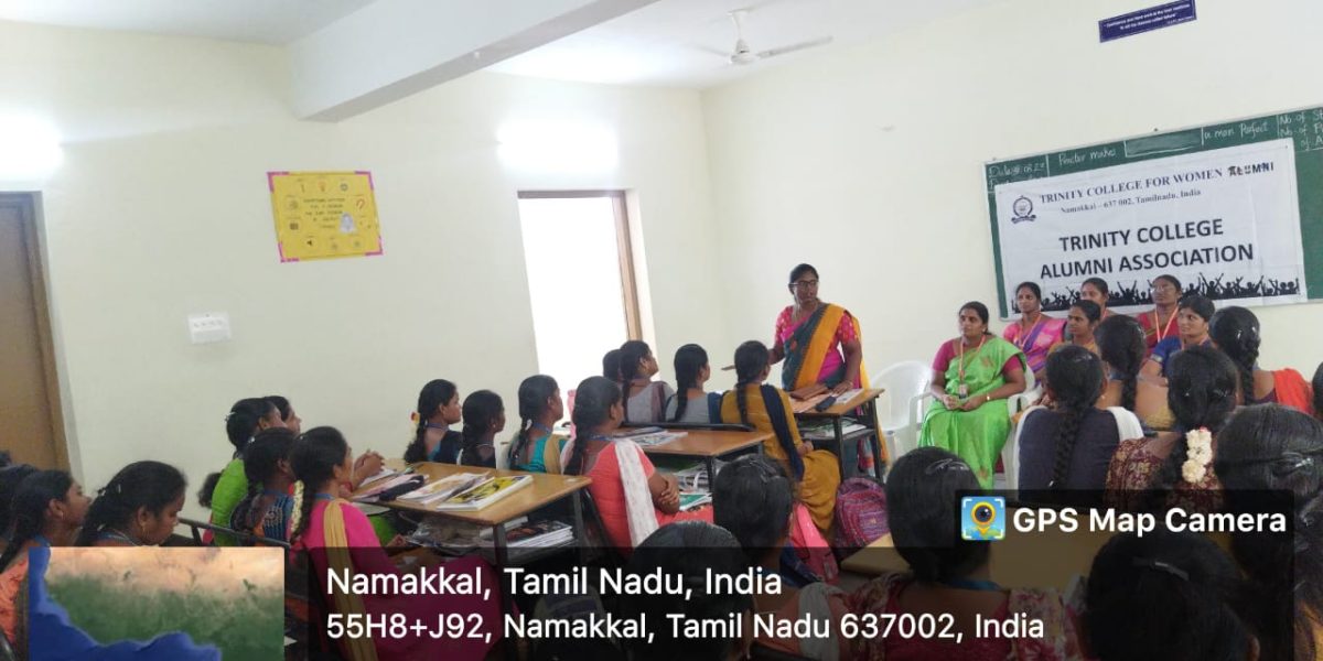 The faculty cum Alumni of Trinity College for Women, Namakkal, Mrs. G. Nithya, Mrs. D. Prabha, Mrs. V. Gayathri, Mrs. P. Sathiya and Mrs. A. Thenmozhi also spoke on that occasion.