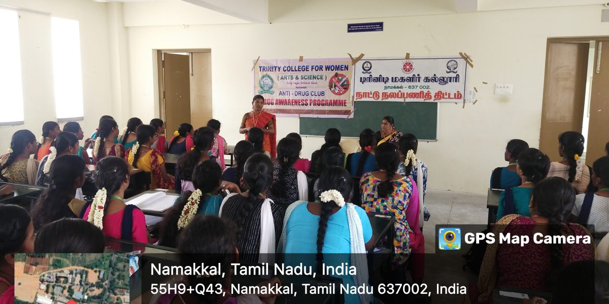 The Anti Drug Club, in association with the National Service Scheme, Trinity College for Women, Namakkal conducted “Anti Drug Awareness Programme” on 30th September 2024 in the College premises. Mrs. V. Gokila, Assistant Professor in Mathematics and NSS Programme Officer, Unit 2, Trinity College for Women, Namakkal delivered the topic “Fall seven times stand up eight”. Mrs. V. Gokila, highlighted the importance of increasing drug menace is a grave concern for the society. Also, she explained the demerits of drugs like ayahuasca, cocaine, fentanyl, heroin, salvia, tobacco, nicotine, liquor, tobacco, etc., All the students of the College attended that programme. Dr. S. Jayanathi, Coordinator, Anti Drug Club and Dr. M. Sasikala, NSS Programme Officer, Unit 1, Trinity College for Women, Namakkal made arrangements.