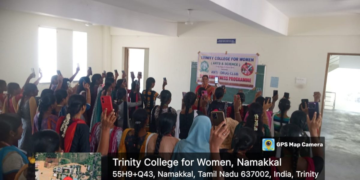 The Anti-Drug Club, Trinity College for Women, Namakkal, conducted a program on the “Drug Free Tamil Nadu Mobile App Launching Programme” on 24th February 2025 in the college campus.