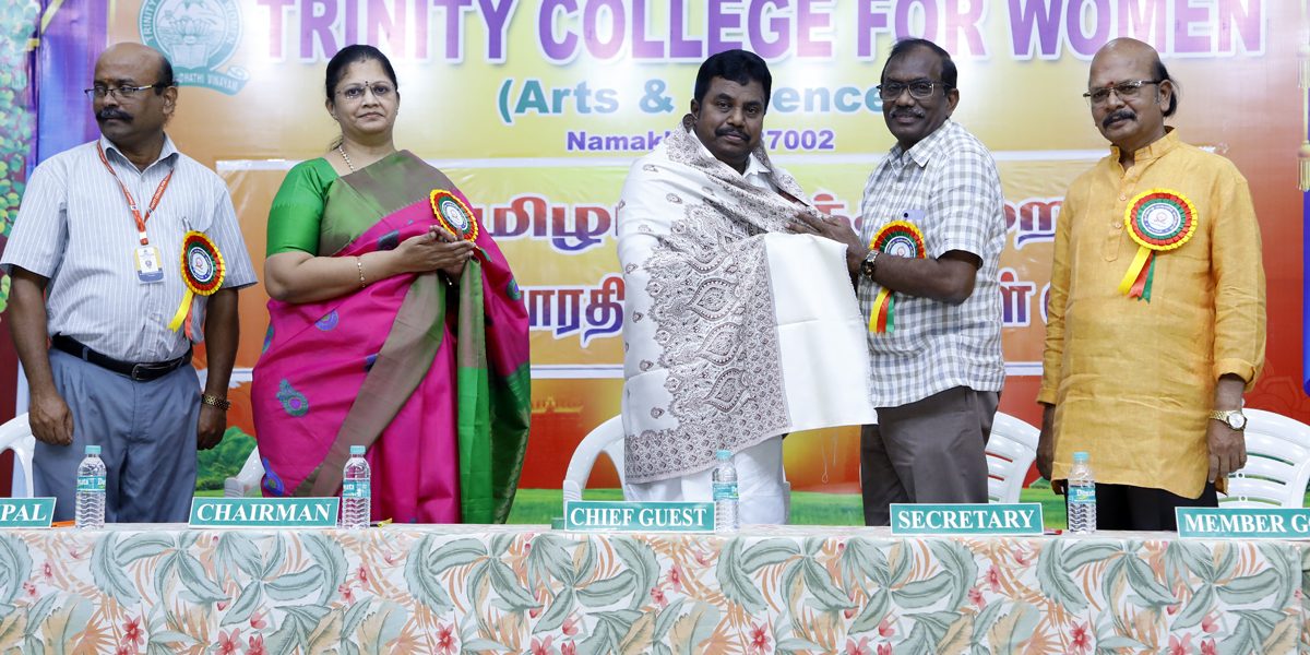 The birth anniversary (11th December) of Tamil Poet Mahakavi Bharathiar was celebrated with fervor in Trinity College for Women, Namakkal on 15.12.2022. In this regard, the Post Graduate & Research Department of Tamil, Trinity College for Women, Namakkal organized a one day event in the title of “Victory of Feminism” (பெண்மை வெல்க) on that day. Mr. A. Pari, I.P.S., Inspector General of Police (Retired), West Zone (Coimbatore) was the special guest.