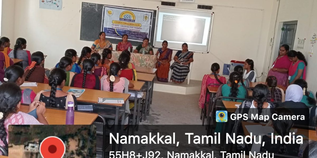 The Citizen Consumer Club, in association with Post Graduate & Research Department of Commerce, Trinity College for Women, Namakkal organized a programme in the title of “Food Safety – The role and responsibilities of consumer” (உணவுப் பாதுகாப்பு – நுகர்வோரின் பங்களிப்பும் பொறுப்புகளும்) on 30.03.2023.