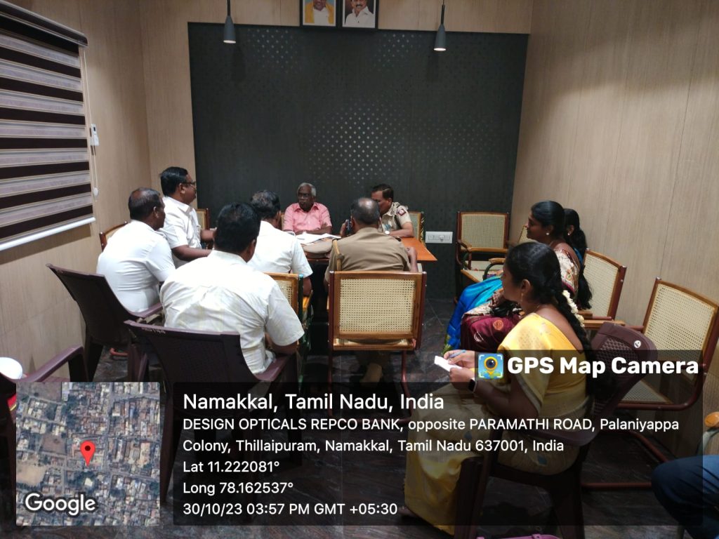 The consecration ceremony (கும்பாபிஷேகம் – குடமுழுக்கு விழா) of Lord Narasimhar and Lord Anajaneyar Temples in Namakkal is to be held on November 1, 2023. On this subject, a preliminary meeting was held on October 30, 2023, in the office of HR & CE (Hindu Religious and Charitable Endowment), Namakkal.