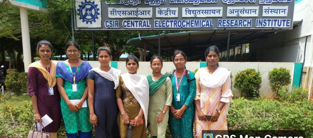 The Department of Chemistry of Trinity College for Women, Namakkal, executed a renowned Central Government Research Institute, Central Electrochemical Research Institute (CECRI), Karaikudi in SivagangaI District on 05.07.2023. The following 8 students of second year M.Sc., Chemistry took part and gathered more information related to CECRI in Karaikudi.