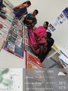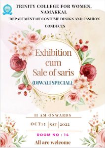 The Department of Costume Design and Fashion, Trinity College for Women, Namakkal conducted “Exhibition cum Sale of Sari” (Diwali Special) on 15.10.2022 in the Room No 4 of College premises. Many faculty members and students of the College eagerly purchased saris for the upcoming Deepavali festival.
