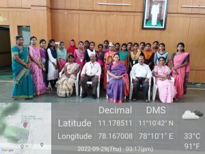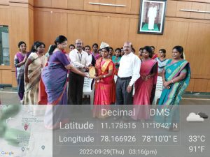 Mrs. B. Kavitha, Assistant Professor in Costume Design of our College was the caretaker. All the participants are greeted by the Chairman Mr. P.K. Sengodan, The Secretary Er. K. Nallusamy, The Executive Director Mrs.Aruna Selvaraj, The Principal Dr. M.R. Lakshiminarayanan, The Director – Academic Dr Arasuparameswaran, The faculty members of Costume Design and Fashion Mrs. K. Punitha, (AP HOD), Ms. K.P. Theepika and Mrs. A.P. Pavithra on the date of 29.09.2022