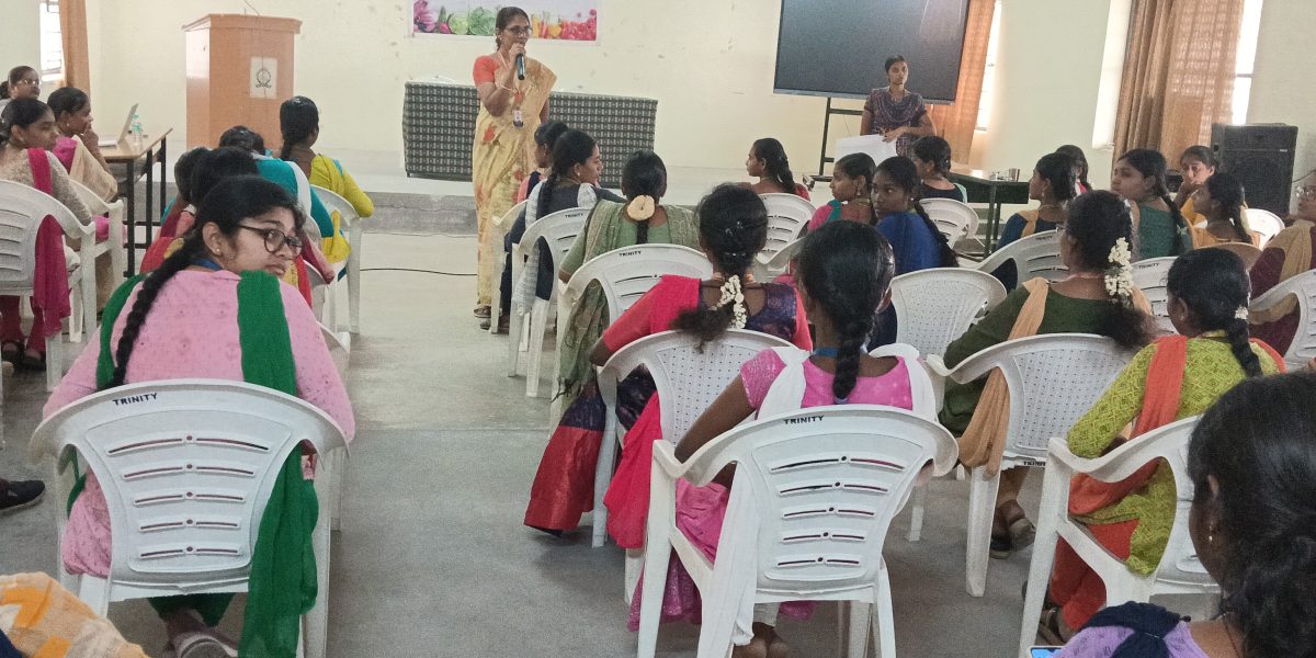 The Department of Nutrition and Dietetics, in association with the Unnat Bharat Abhiyan Cell, Trinity College for Women, Namakkal, conducted an awareness program on “Eating habits among college students and its association with BMI (body mass index)” on March 1, 2024, on the college campus. Ms. P. Apurva, Community Nutritionist, Kandhapuri, Reddipatti, Namakkal, was the resource person. The aim of the event was to emphasize the significance of good nutrition and a proper diet for remaining healthy and free from chronic malnutrition. Ms. P. Apurva had an interactive session with our students and sensitized them on the significance of a nutritious and balanced diet, the role of nutrition in development and growth, and strengthening in their academics. Mrs. R. Rupa, Assistant Professor and Head, Department of Nutrition and Dietetics, Trinity College for Women, Namakkal, welcomed the gathering. Mrs. V. Sowmiya, Assistant Professor in Nutrition and Dietetics at the College, proposed the vote of thanks. Mrs. S. Hemalatha, Coordinator, Unnat Bharat Abhiyan Cell of the College, was also present. More than 200 students benefited from this program.