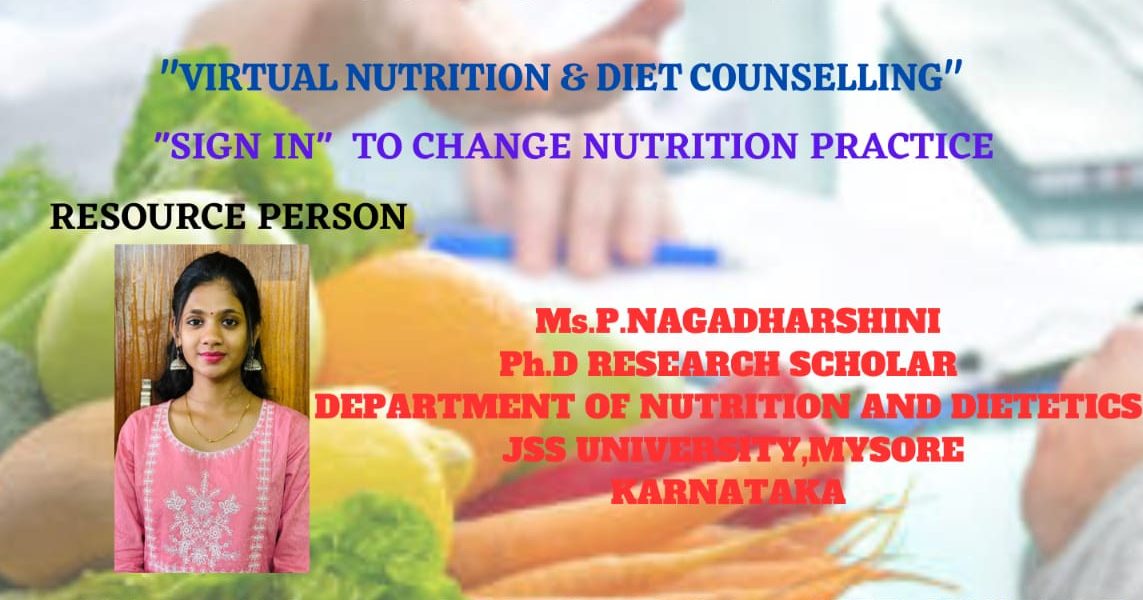 The Department of Nutrition and Dietetics, Trinity College for Women, Namakkal, conducted a webinar entitled “Virtual Nutrition and Diet Counselling, “Sign In,” to change nutrition practice on October 27, 2023. It was held on the platform of Google Meet.