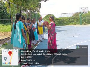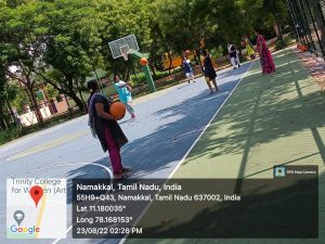 The Department of Physical Education, Trinity College for Women, Namakkal organized a programme entitled “What is the significance of playing a basketball game?” on 23.08.2022. Mrs. V. Archana, Director of Physical Education, Trinity College for Women, Namakkal was the resource person. She explained the basic skills in basketball like shooting, dribbling, defending, rebounding and passing.
