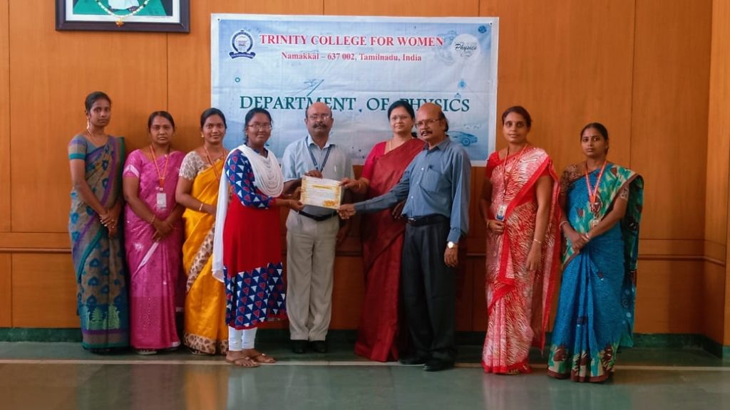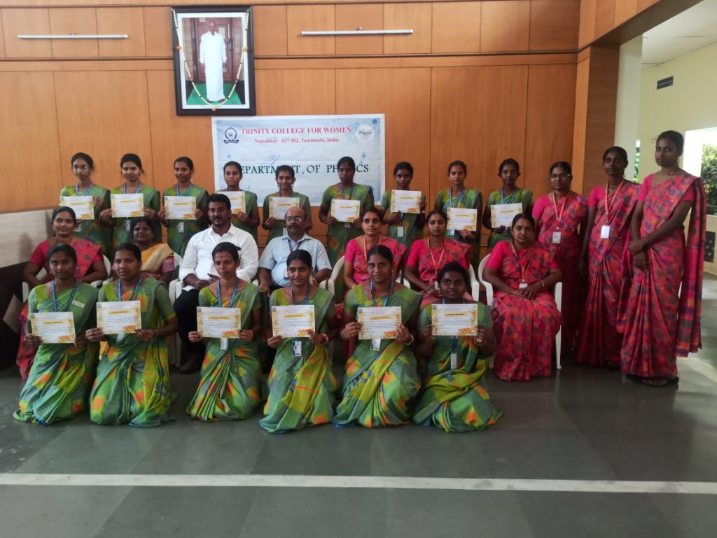 Mrs. Aruna Selvaraj, Executive Director; Dr. M.R. Lakshiminarayanan, Principal; Dr. Arasuparameswaran, Director-Academic; Mr. N.S. Senthilkumar, Administrative Officer; the faculty of physics, Dr. B. Lakshmi, Mrs. B. Kavitha, Dr. R. Sakunthaladevi, Mrs. S. Mohanapriya, Mrs. V. Kalaivani, Ms. K. Saranya, and Mrs. P. Gowthami were also present on that occasion. Nearly 70 students enthusiastically participated and benefited through this workshop.