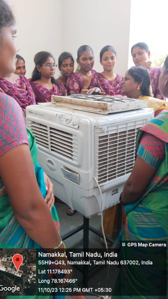 They explained how to rectify and maintain the electronics and electrical instruments like the iron box, induction stove, ceiling fan, table fan, incandescent lamp, tube light, refrigerator, washing machine, wet grinder, mixer grinder, air cooler, heater, microover, etc., both orally and practically.