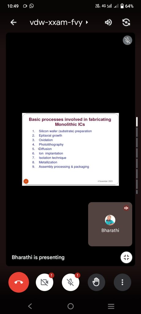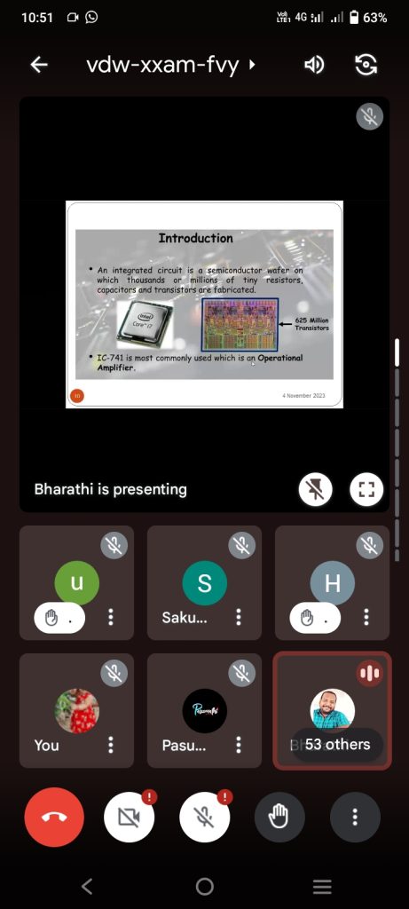The Department of Physics, Trinity College for Women, Namakkal, conducted a webinar programme entitled “Linear Integrated Circuits and Their Applications” on November 4, 2023, through the virtual mode of Google Meet.