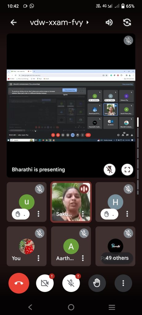 The faculty of physics, Dr. B. Lakshmi, Mrs. B. Kavitha, Dr. R. Sakunthaladevi, Mrs. S. Mohanapriya, Mrs. V. Kalaivani, and Mrs. P. Gowthami, were also present on that online programme.