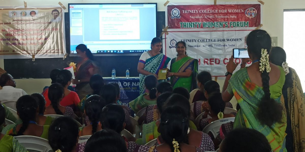 The Department of Social Welfare & Women Rights, Namakkal District and Trinity Women’s Forum & Youth Red Cross of Trinity College for Women, Namakkal jointly conducted a one day awareness programme entitled “World Day against Trafficking” (மனித கடத்தலுக்கு எதிரான சர்வதேச விழிப்புணர்வு தின பயிலரங்கம்) on 10th August 2022. Because of World Day against Human Trafficking (30.7.2022), this event was held.