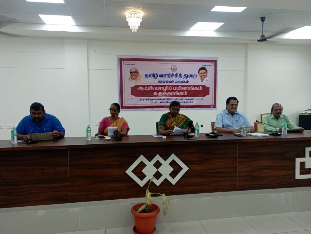 The Department of Tamil Development, Namakkal district organized a two day workshop on Official Language (ஆட்சி மொழி பயிலரங்கம்) on the date (s) of 03rd and 04th September 2024.. It was held in the premises of District Collector Office, Namakkal.