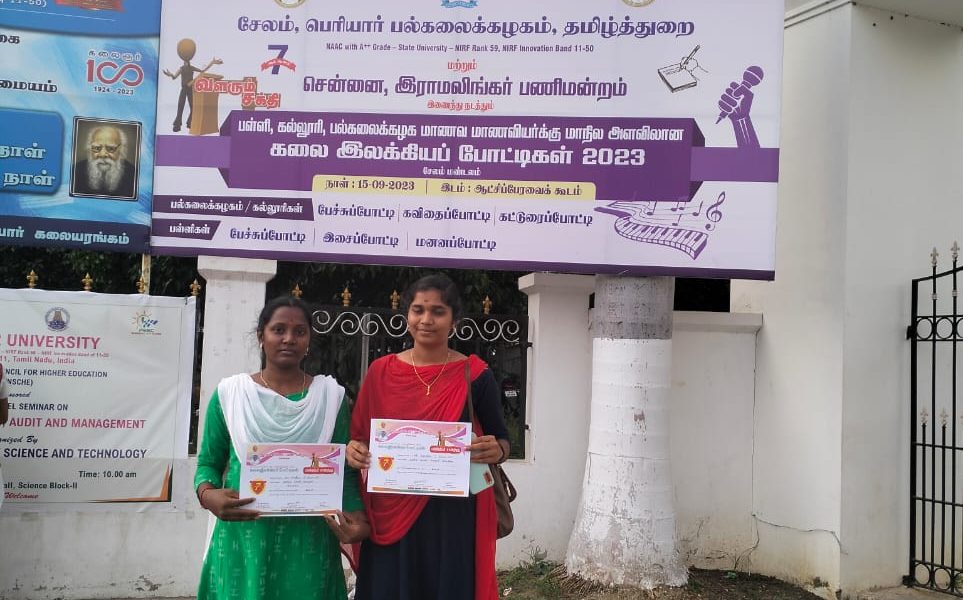 The Department of Tamil, Periyar University, Salem and Ramalingar Pani Mandram, Dr Mahalingam College of Engineering and Technology, Pollachi jointly conducted the various competitions like Elocution, Lyrics and Essay Writing on 15th September 2023 in the premises of Periyar University, Salem.