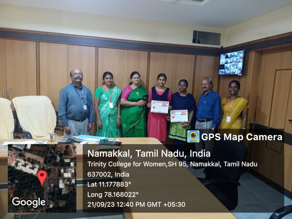 In this continuation, a felicitation function was held on 21.09.2023 in the Chairman’s chamber. Mrs. Aruna Selvaraj, Executive Director, Dr. M.R. Lakshiminarayanan, Principal, Dr. Arasuparameswaran, Director – Academic, Dr. M. Sasikala, AP & HOD of Commerce and Ms. L. Keerthi, AP in Commerce, Trinity College for Women, Namakkal took part and conveyed their greetings to them.