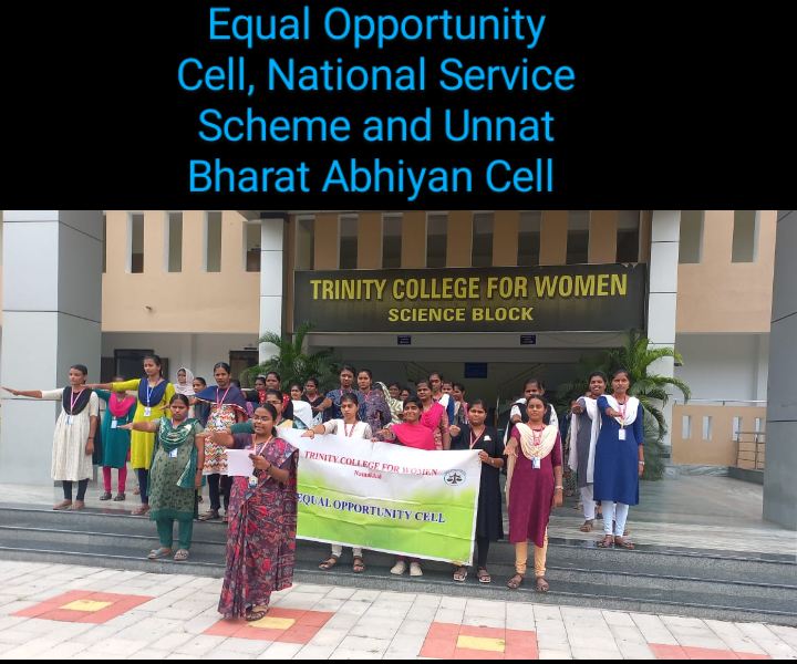 The Equal Opportunity Cell, National Service Scheme and Unnat Bharat Abhiyan Cell, Trinity College for Women, Namakkal observed International Human Rights Day on 10th December 2025 on the College campus in the theme of “Human Rights, Our Everyday Essentials.” Ms. M.V. Mekavarshini, Assistant Professor in English & Member of the Equal Opportunity Cell of the College, administered the oath as regards to the protection of human rights. All the students and faculty members took part.