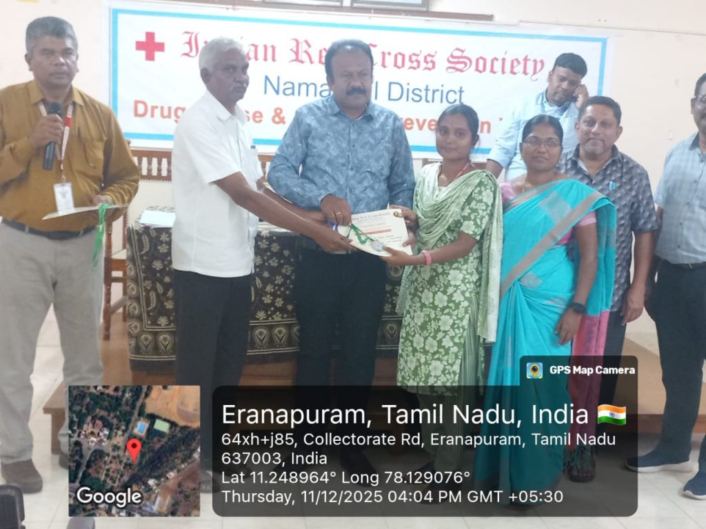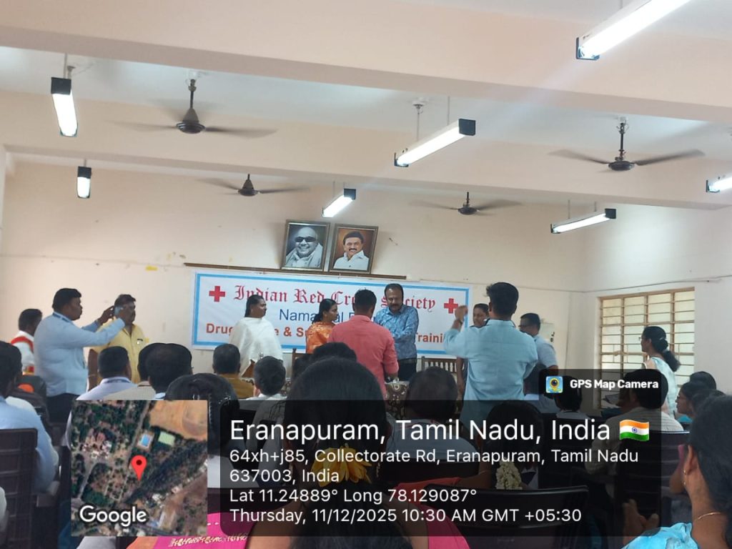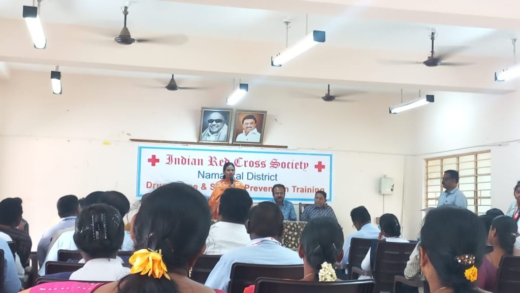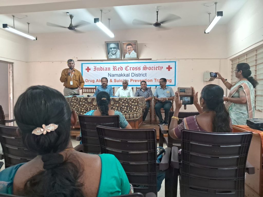 The Indian Red Cross Society, Tamil Nadu Branch, The Youth Red Cross, Namakkal District and Periyar University, Salem, jointly conducted a one-day awareness programme titled “Suicide & Drug Abuse Prevention Training for YRC Programme Officers of Namakkal District” on 11th December 2025 held at the District Panchayat Office Meeting Hall, Collector Office, Namakkal on 11th December 2025.