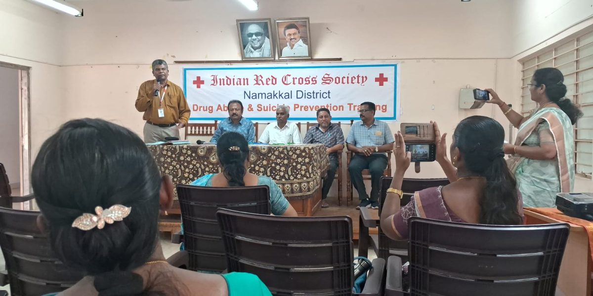The Indian Red Cross Society, Tamil Nadu Branch, The Youth Red Cross, Namakkal District and Periyar University, Salem, jointly conducted a one-day awareness programme titled “Suicide & Drug Abuse Prevention Training for YRC Programme Officers of Namakkal District” on 11th December 2025 held at the District Panchayat Office Meeting Hall, Collector Office, Namakkal on 11th December 2025.