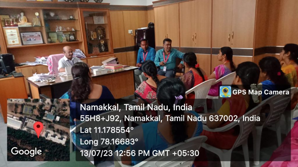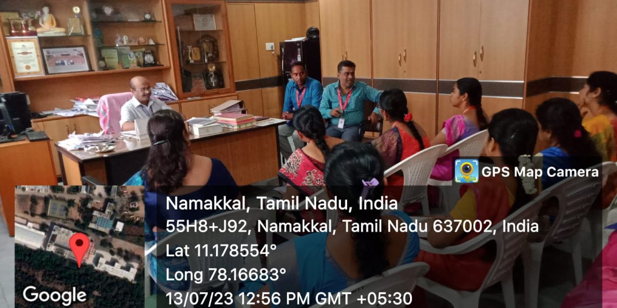 The Institution’s Innovation Council (IIC) and in support of the Internal Quality Assurance Cell, Trinity College for Women, Namakkal, conducted a one-day interaction programme entitled “NAAC Accreditation based website development for higher educational institutions on 13th July 2023 in the college premises.  Mr. V.V. Sankaranarayanan, Regional Business Development Manager and Mr. V. Palanivel, Business Development Manager, Saarc Masts Tech (P) Ltd., NA Academy, 31-A, Abbigere Main Road, Kammagondanahalli, Bengaluru, Karnataka state were the resource persons.  They described the various management systems, like admission, profile of the students, profile of the faculty, fee management, payroll management, general accounting, transportation management, library management, inventory management, hostel management and so on.  Apart from that, they explained the examination related modules such as assignment, assessment, examination configuration, internal and external examination, subjects of examinations, allocation of seating arrangements in the examination halls, calculation of schedule of examinations, generation of hall tickets, dual mark entry, moderation, arrears, re-appearing, improvement, supplementary, etc.,